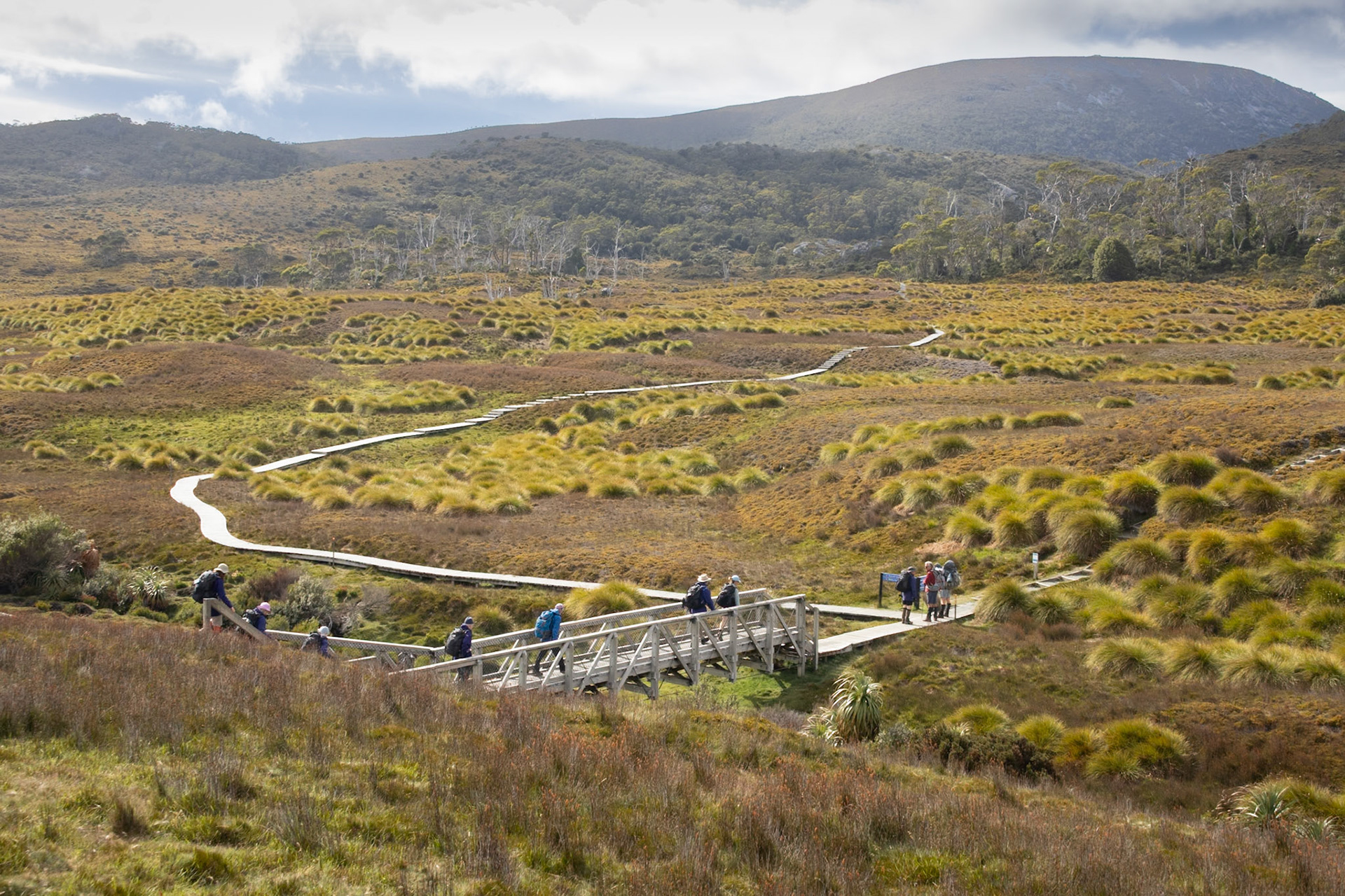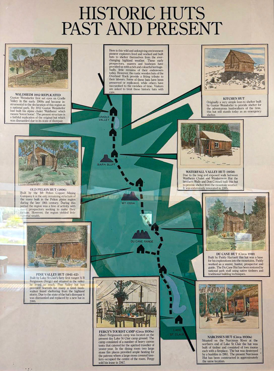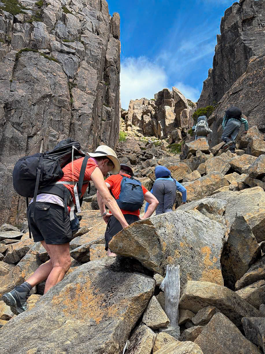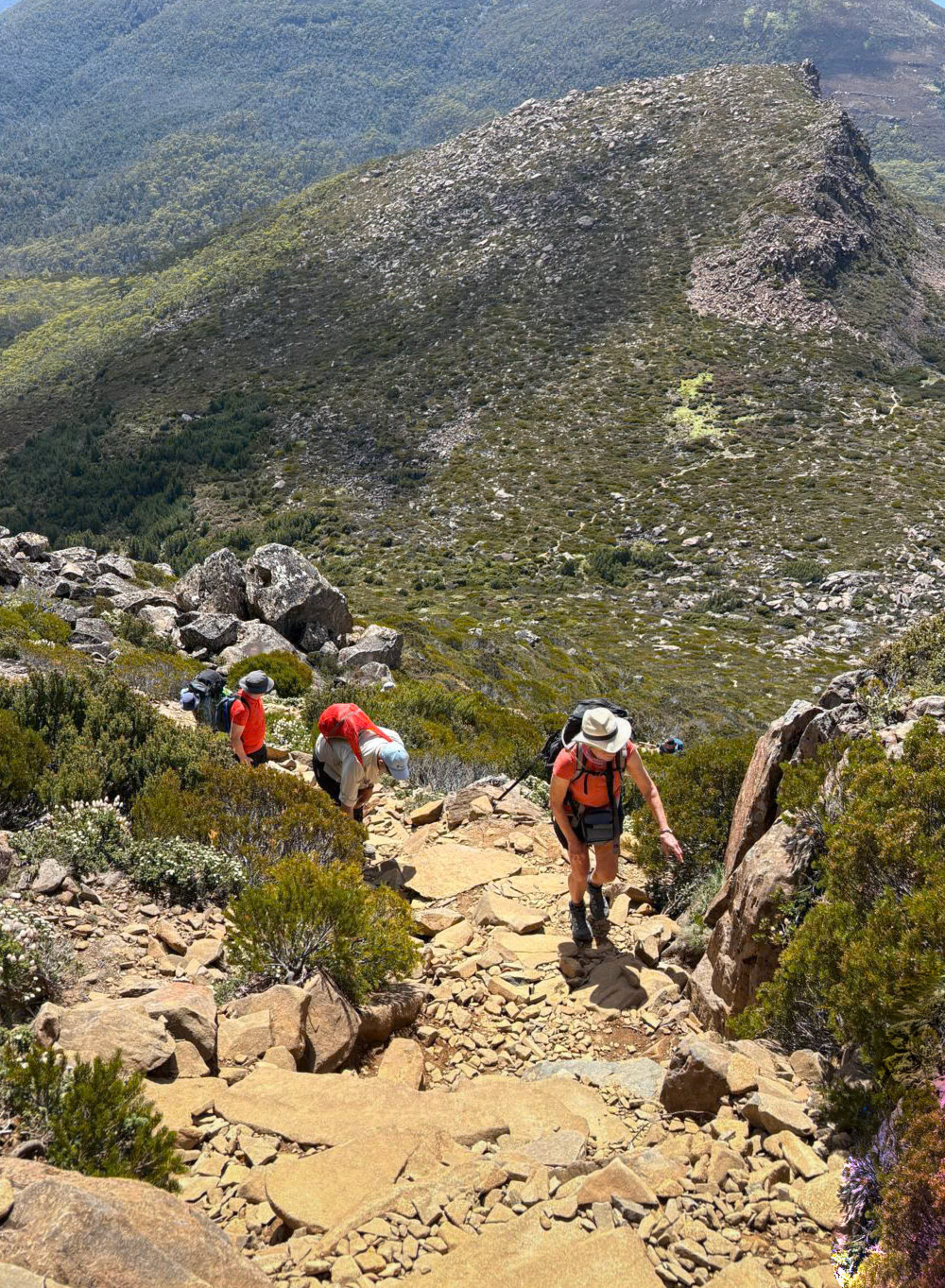 The Overland Track is a 65km alpine walk through the Cradle Mountain-Lake St Clair National Park within the Tasmanian Wilderness World Heritage Area. It winds from Cradle Mountain to Lake St Clair over alpine plains, past glacial mountains, rivers and lakes and through temperate rainforests. The track may originally have been used as an Aboriginal access track. The Aboriginals were persecuted by the European settlers who arrived in the 1800's. In the 1910's Gustav and Kate Weindorfer began campaigning for the area to become a national park. They built the Waldheim Chalet in 1912, to provide rugged accommodation for nature lovers. There are a number of historic huts along the track, each with their own story. We did a guided 6 day private hut to hut walk with Taswalks. We climbed Mount Ossa, Tasmania's highest mountain at 1617 metres, swam in lakes and rivers and ended with a boat ride on Lake St Clair.