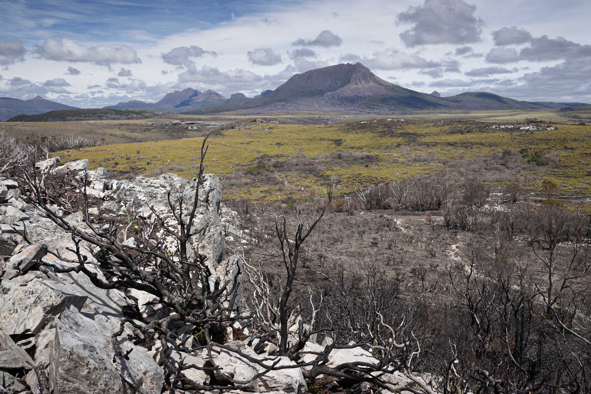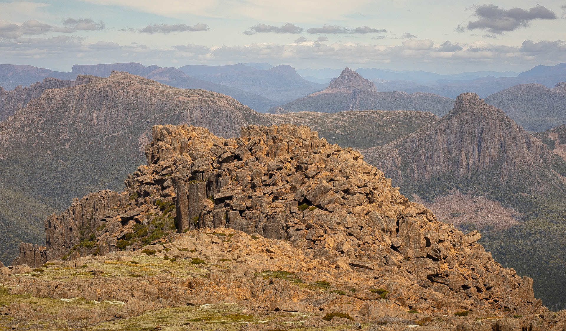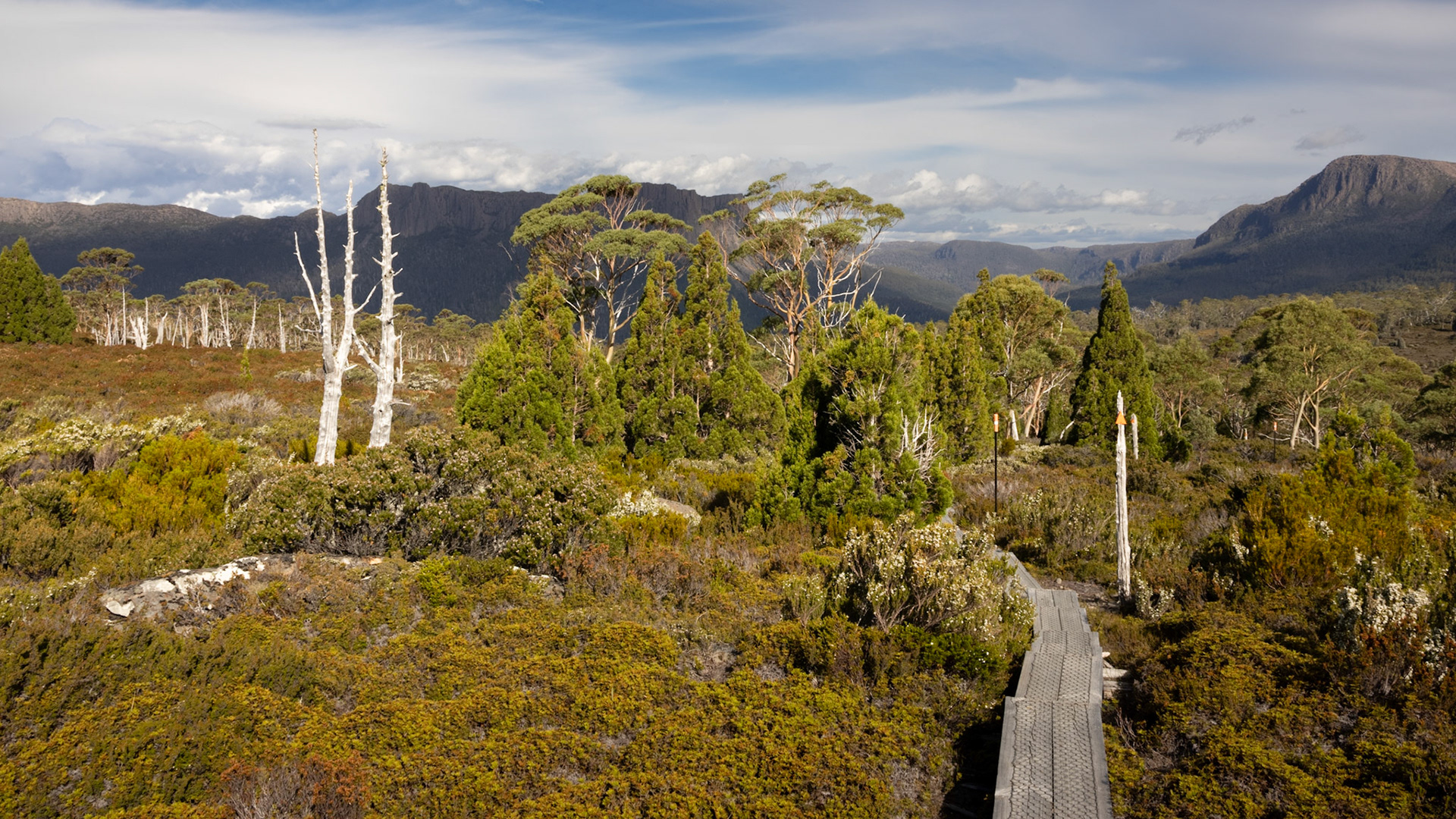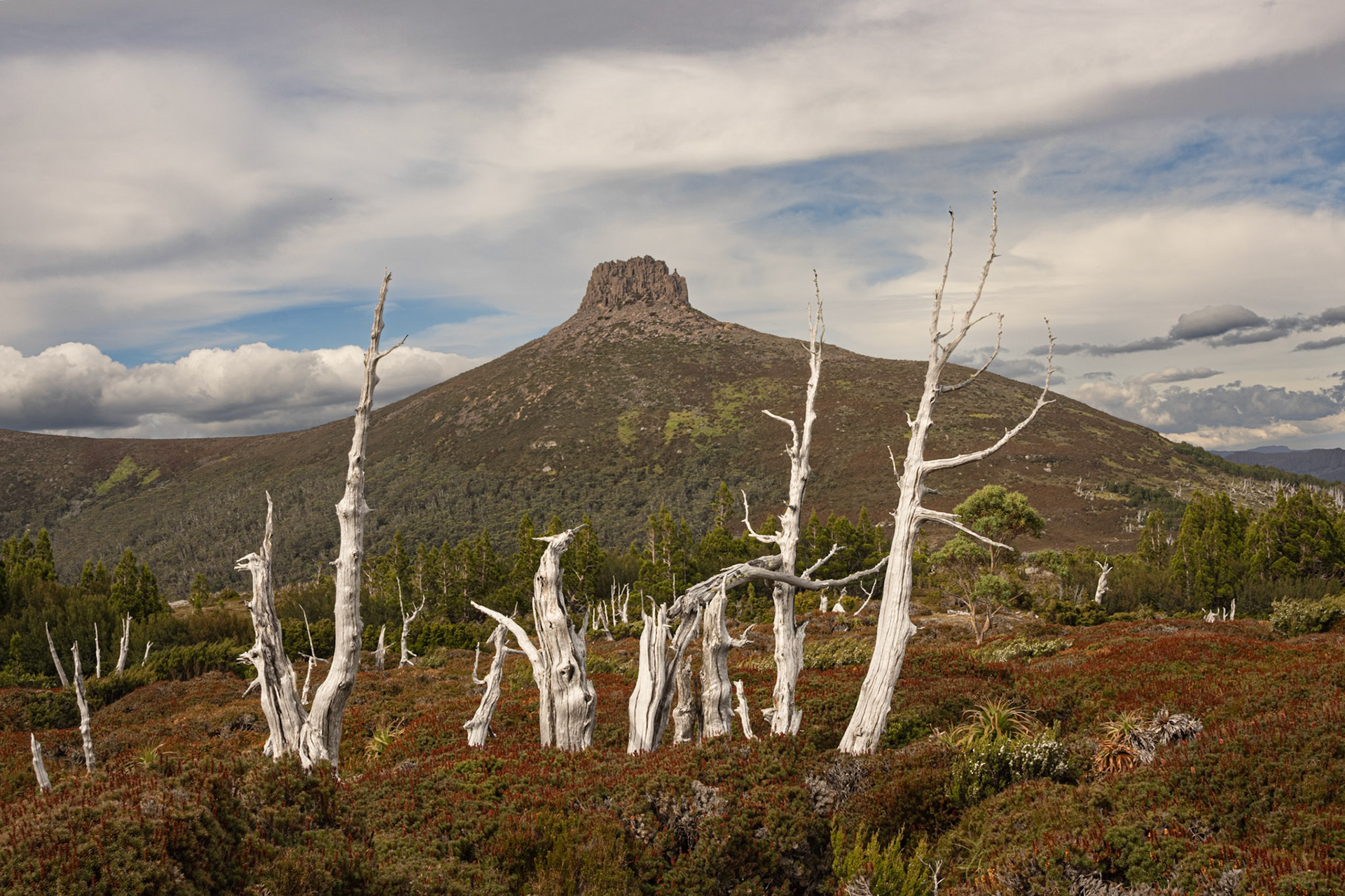 The Overland Track is a 65km alpine walk through the Cradle Mountain-Lake St Clair National Park within the Tasmanian Wilderness World Heritage Area. It winds from Cradle Mountain to Lake St Clair over alpine plains, past glacial mountains, rivers and lakes and through temperate rainforests. The track may originally have been used as an Aboriginal access track. The Aboriginals were persecuted by the European settlers who arrived in the 1800's. In the 1910's Gustav and Kate Weindorfer began campaigning for the area to become a national park. They built the Waldheim Chalet in 1912, to provide rugged accommodation for nature lovers. There are a number of historic huts along the track, each with their own story. We did a guided 6 day private hut to hut walk with Taswalks. We climbed Mount Ossa, Tasmania's highest mountain at 1617 metres, swam in lakes and rivers and ended with a boat ride on Lake St Clair.